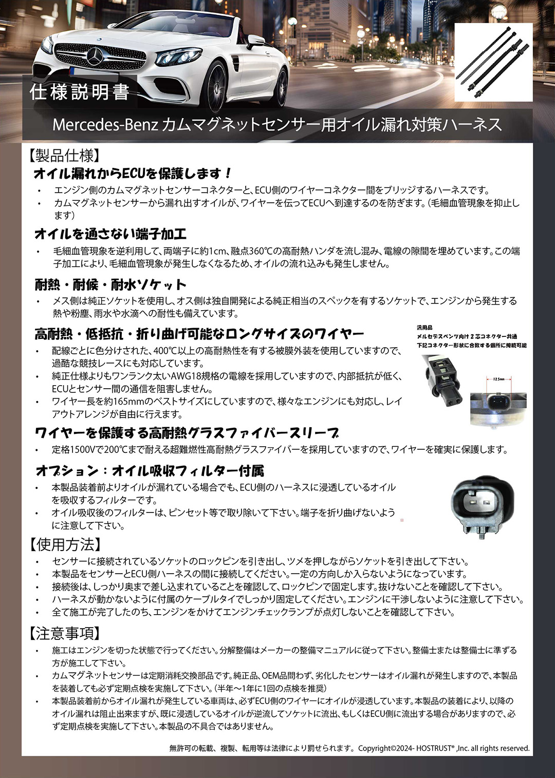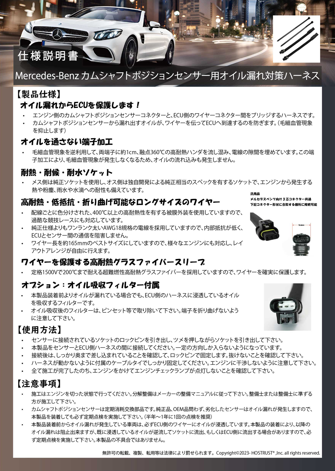 メルセデスベンツ(Melcedes-Benz) カムシャフトポジションセンサー用オイル漏れ対策ハーネス ご購入は下記ECサイトをご利用ください。 Amazon Yahoo! Japan ショッピング BtoB向け大量受注も承りますので、お見積りはお気軽にご相談ください。 連絡先: ordercarparts@hostrust.net